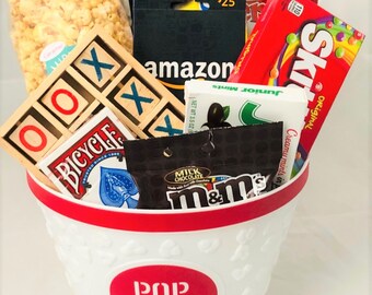 Family game night gift basket. Our gourmet food gift boxes come in a variety of flavour combinations to satisfy your taste buds. Fill up an ordinary plastic bucket with the right movie night supplies as popcorn containers, candy box, tissue papers and so on.